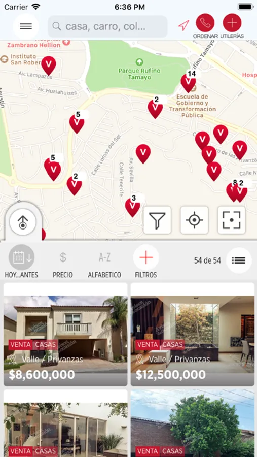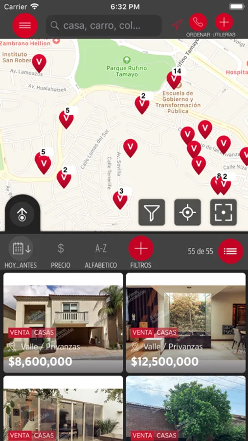 • Encuentra avisos de bienes raíces de todo el país a través de su navegación por mapa.