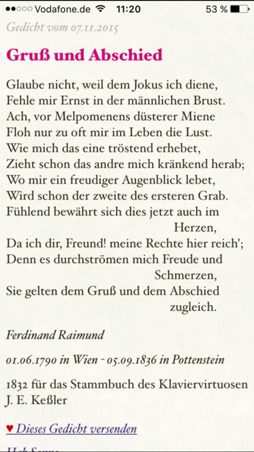 Die Gedichtsammlung wird ständig erweitert, sodass es immer neue Gedichte gibt ohne die App zu aktualisieren.