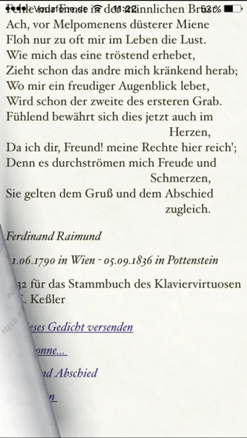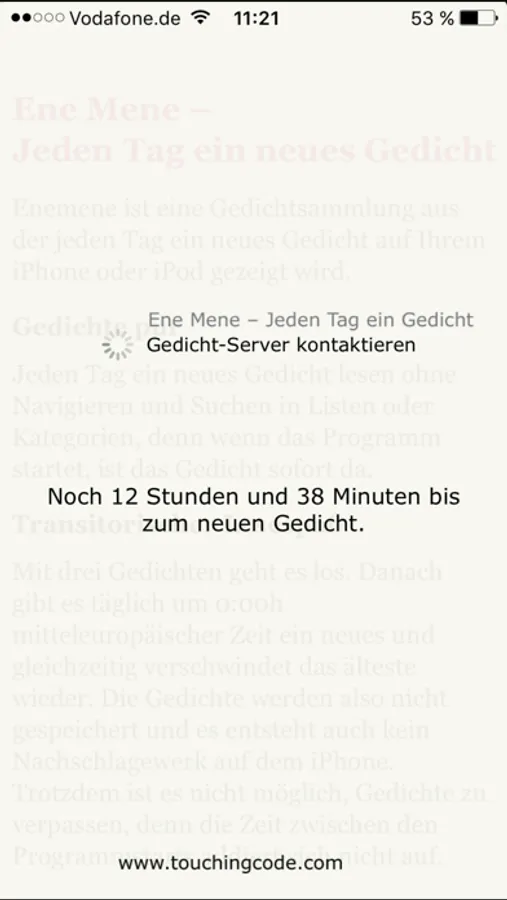 Zum Abholen der Gedichte muss das iPhone mit dem Internet verbunden sein.