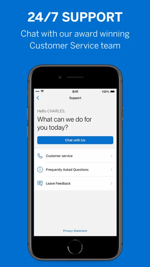 • We’re here to chat 24/7. Start a chat with us in seconds and revisit conversations any time in the app.