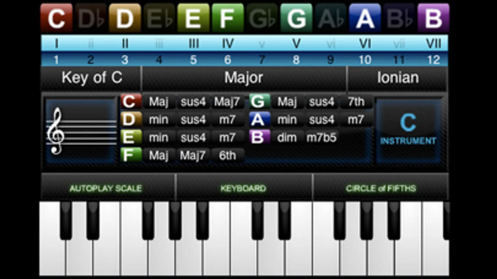Tap on any note of the scale, on a chord name, or on the keyboard to hear how it sounds.