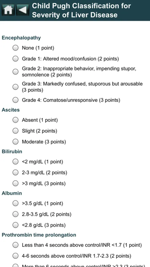 Child Pugh Classification for Severity of Liver Disease (SI units)