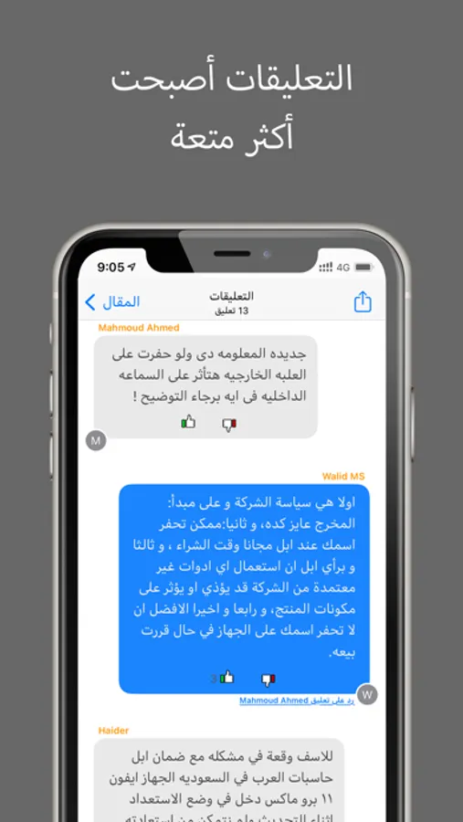 * التعليقات على المقال بشكل المحادثات، سهلة جداً وممتعة في الاستخدام