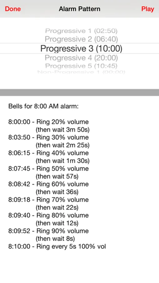 Progressive Alarm Clock will wake you up gently and gradually using the beautiful sounds of the Tibetan singing bowl. At the specified alarm time, the bells will begin to ring in a pre-defined pattern - starting out softly and slowly and gradually getting louder and more frequent. You'll come out of your slumber slowly and peacefully. No more being jolted awake.
