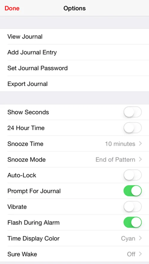 + You may enter journal notes upon awakening - great for recording your dreams before the memory fades. You can then go back and review your journal entries and you may export the journal via email. For privacy, you may set a password to prevent unauthorized access.