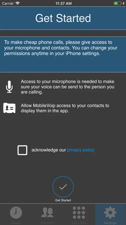 - After updating to iOS8, some users may experience issues with their microphone. Solve this issue by going to: Settings > Privacy > Microphone, turn on the MobileVOIP switch there!