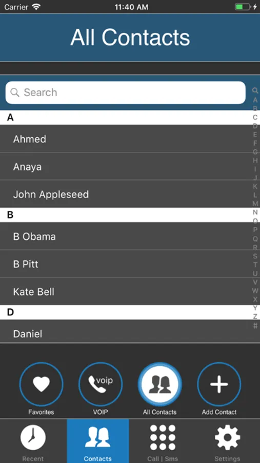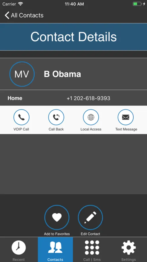 Select any contact from your contact list, which is accessible in the app, and start your call using MobileVOIP anywhere, anytime.