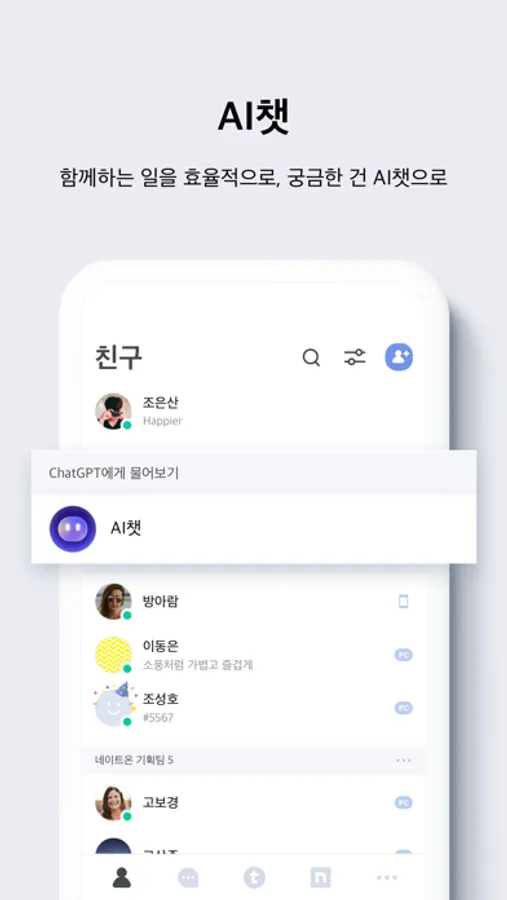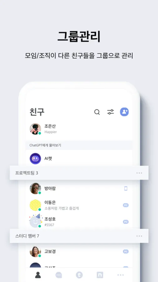 • 기기에 상관없이 대화 - 네이트온은 모바일과 PC를 지원합니다.