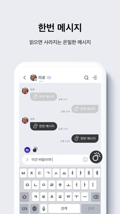 • 자유로운 파일전송 - 파일 형식과 용량에 제한 없이 파일을 주고받을 수 있습니다.