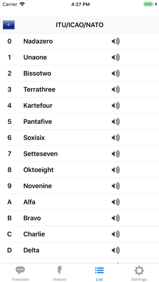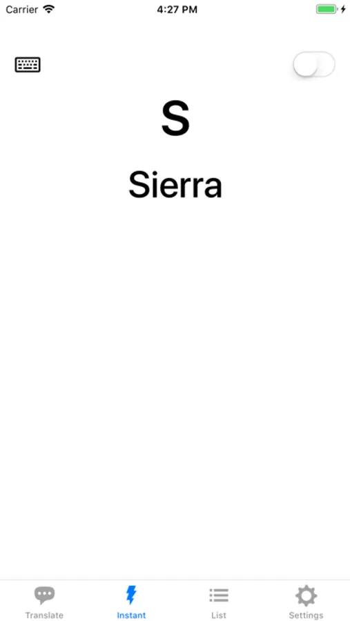 InstantMode: When you type a character the associated codeword instantly appears. If available, you can hear the word or pronunciation with the integrated voice output (not available for all languages)