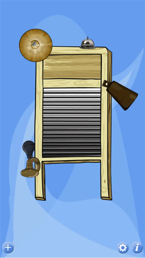 Some reviews say the app doesn't sound like a washboard, but it does use audio samples taken from a real washboard. The samples come from a metal board played with 1" zinc washers -- this gives a sound harder than thimbles but softer than spoons -- and include a tap, scrub and wood sound. The add-on instruments also use real audio samples. Instruments include: