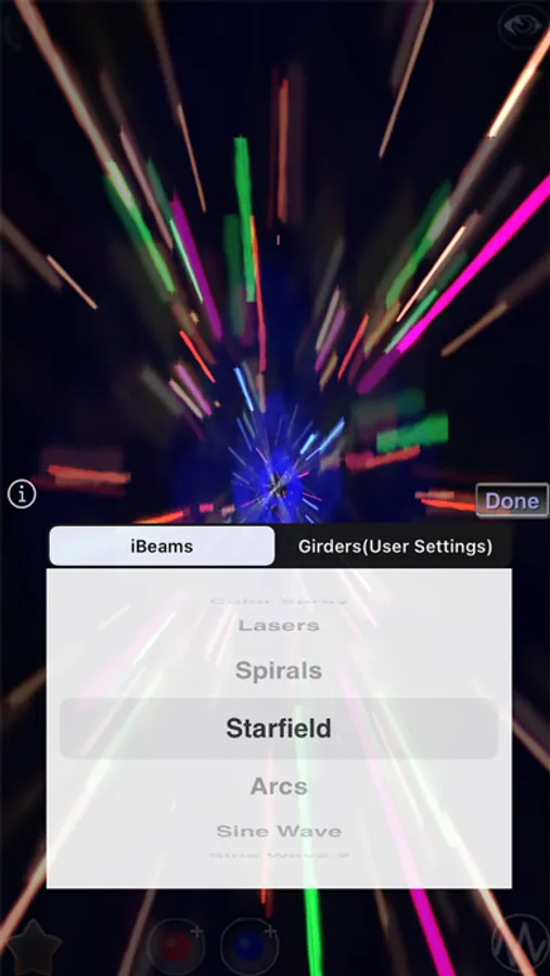 Time for a trip? iBeams is a interactive procedural special effects system, pending FDA approval as a mind altering substance. Create and manipulate hypnotic beams of plasma, lightning bolts, squiggles, lasers, swirly swarms, flames of light, geometric shapes, sine waves, color spray, and other psychedelic shapes.