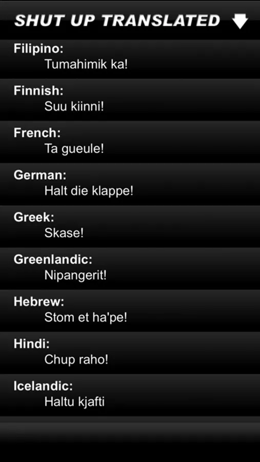 The Shut Up Button also lists how to say Shut Up in nearly 50 languages so that you can let foreigners know you care.