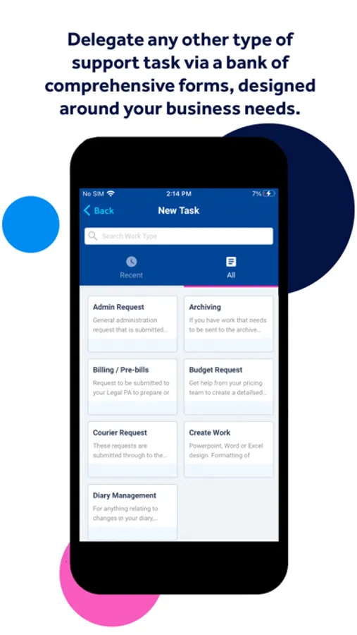 Create any type of Task from a list of configurable Work Types, designed with your business in mind. View your work list and track live updates for all your tasks.