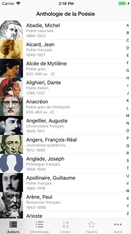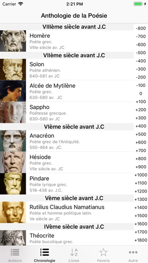 Cette application contient une bibliothèque complète de livres de Poésie. Les oeuvres en texte intégral des plus grands poètes sont présentes dans cette gigantesque collection. Apollinaire, Baudelaire, Du Bellay, Théophile Gautier, Goethe, Homère, Lamartine, Ovide, Edgar Allan Poe, Rabelais, Rimbaud, Ronsard, Verlaine... Et bien d'autres encore !