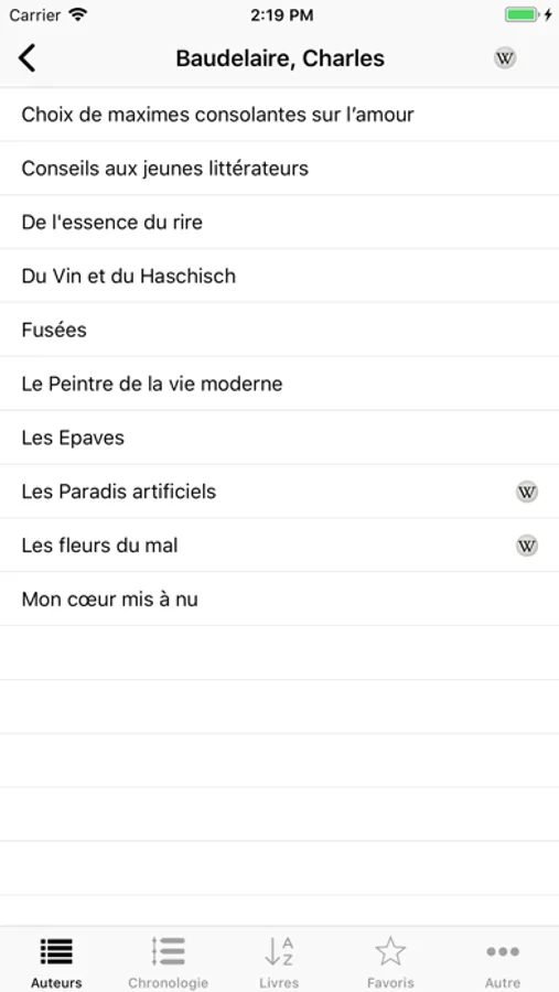 Toutes les oeuvres sont intégrées à l'application: celles-ci sont accessibles instantanément et ne nécessitent pas de connection internet. Cette fonctionnalité permet d'accéder à la bibliothèque à tout moment, en voyage ou dans les transports.