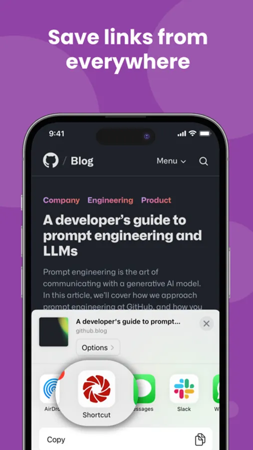 Imagine having all your crucial information at your fingertips, neatly arranged in folders and subfolders and labeled with tags. Shortcut lets you create a structured ecosystem, making it a breeze to store and retrieve anything from grocery lists and user manuals to recipes and wish lists. No more digging through endless files or searching through cluttered notes; with Shortcut, your information is accessible with just a few taps - just like a Swiss army knife.