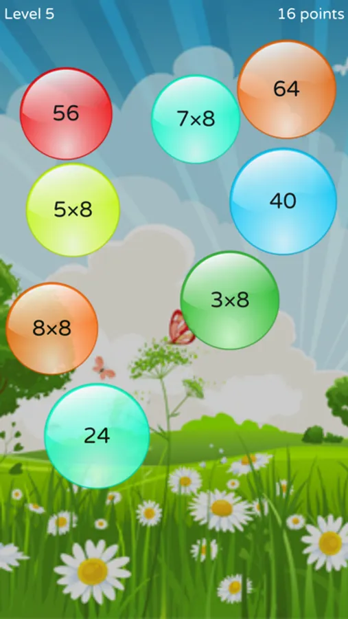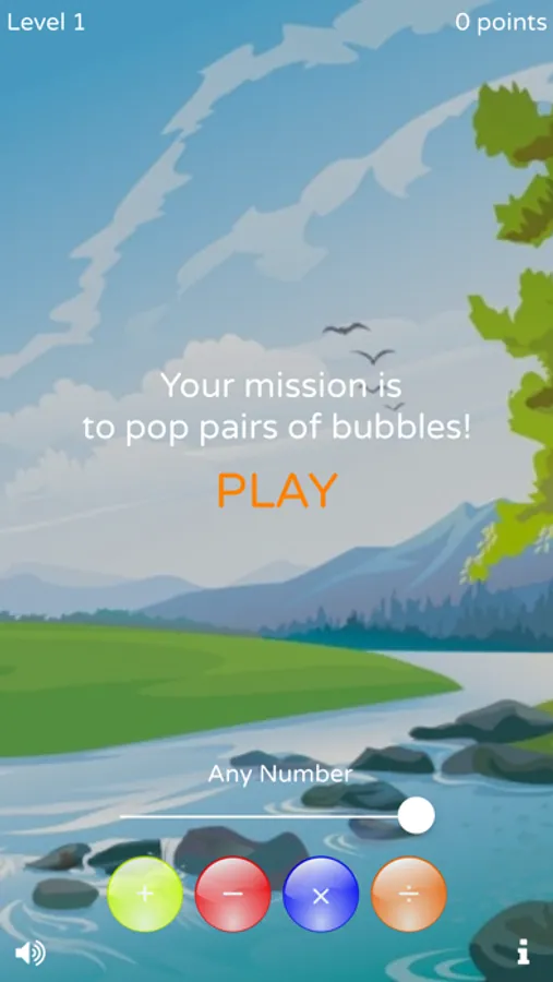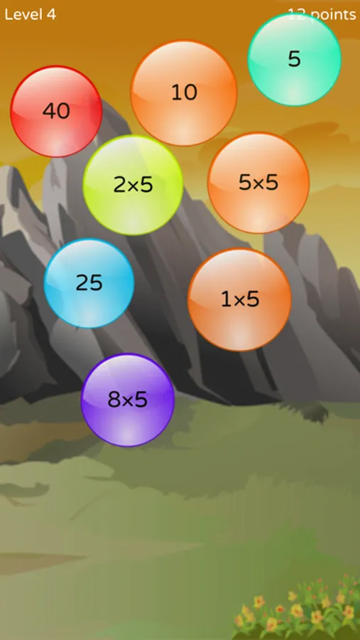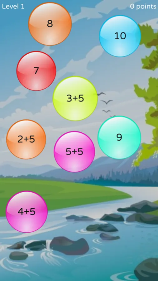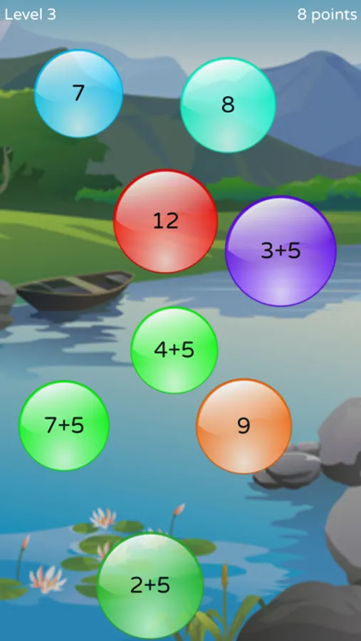 Six pairs of bubbles with numbers float on the screen above beautiful backgrounds. Each bubble contains a number: simply pop the corresponding bubbles!