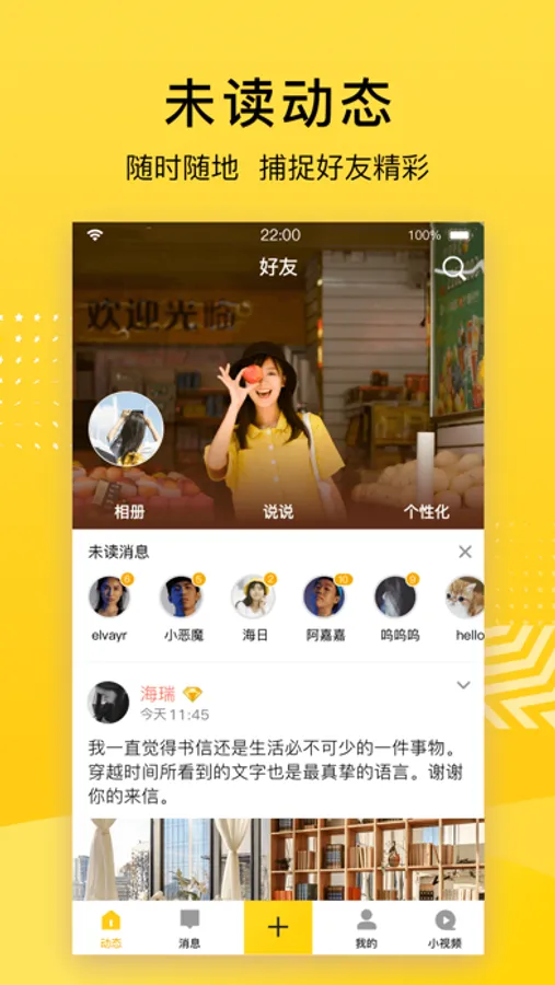 致力于帮助用户随时随地地“分享生活,留住感动”。您可以使用手机查看好友动态、与好友互动、上传照片、写说说、写日志、签到、送礼;更有“玩吧”汇聚众多热门游戏,满足各种娱乐需求。