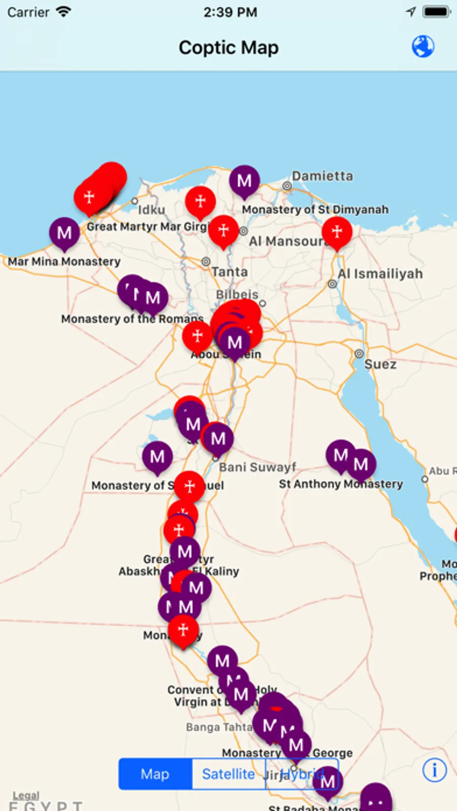 Have you ever wondered where all the Coptic Orthodox churches and monasteries are? CopticFind will populate a map of the earth from our extensive repository acting as a portal to your maps app. As you explore the coptic world, we believe you will be amazed at some of the locations!