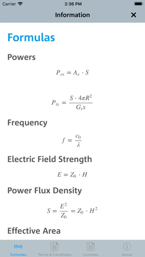 Additionally the input power into a receiver with 50 Ohm input impedance is calculated from the gain of the receiving antenna.