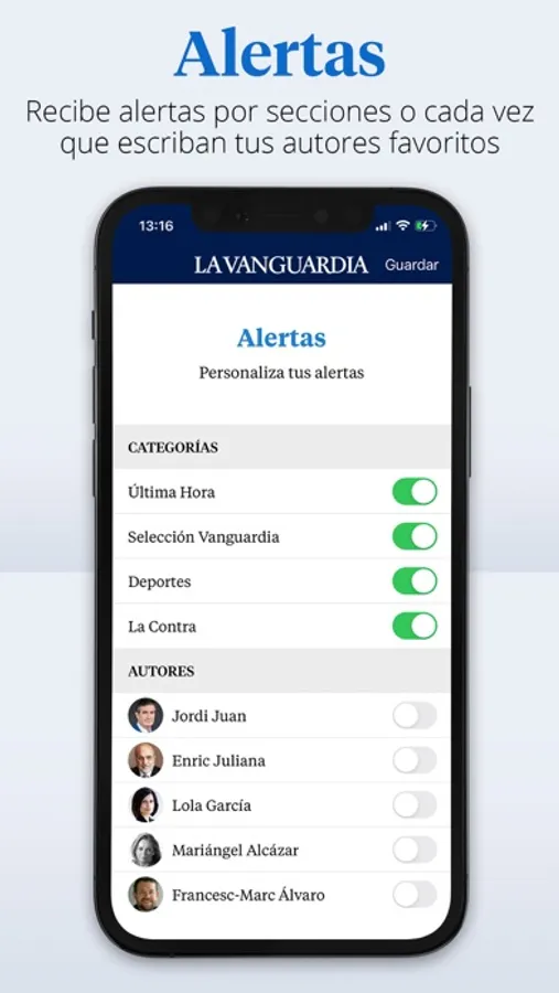 - Recibir alertas con la última hora para ser el primero en estar informado de las noticias. Además de poder recibir alertas cuando tu redactor favorito publique un nuevo artículo