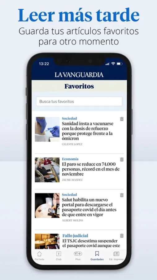 - Guardar las noticias para leerlas más tarde, solo para suscriptores