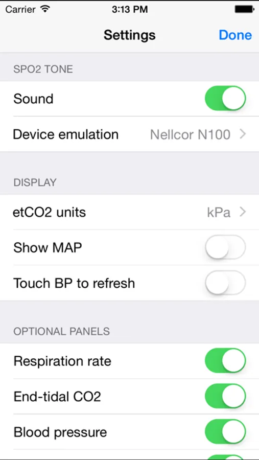 Open SimMon on your two devices of choice and connect via WiFi or Bluetooth. Change the blood pressure, oxygen saturation, respiration rate or heart rate by touching the value and dragging your finger up or down.