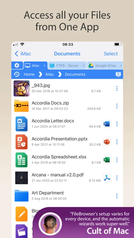 *** FileBrowser remains the best option if you're looking for a file manager that supports a variety of external connections and also integrates deeply with iOS - Federico Viticci - MacStories ***