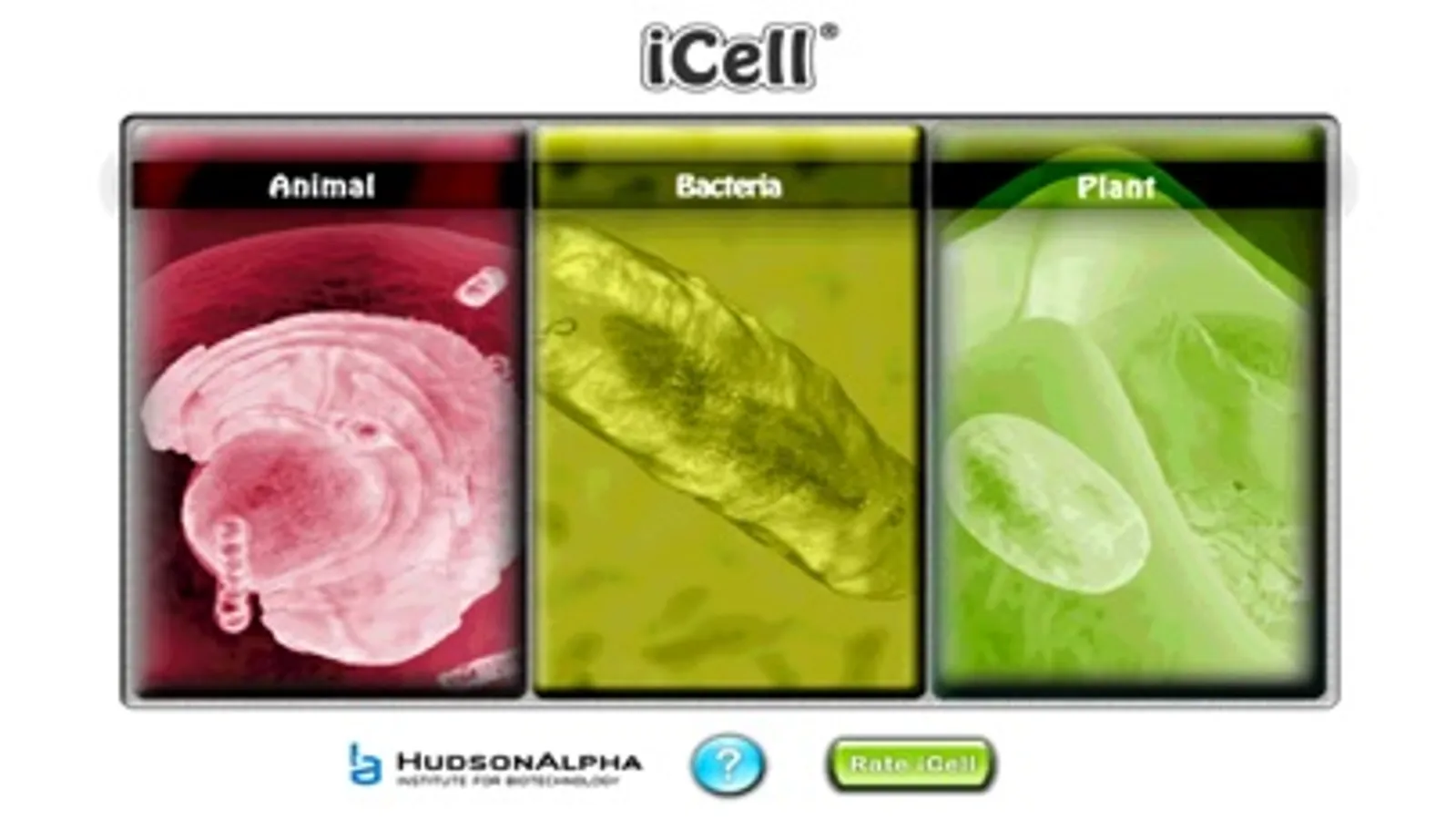 iCell gives students, teachers, and anyone interested in biology a 3D view inside a cell. Included are examples of three types of cells: animal, plant, and bacteria. Learn about the various parts of the cell, which biologists, biochemists, and DNA researchers at the HudsonAlpha Institute study and use to advance the limits of biotechnology.