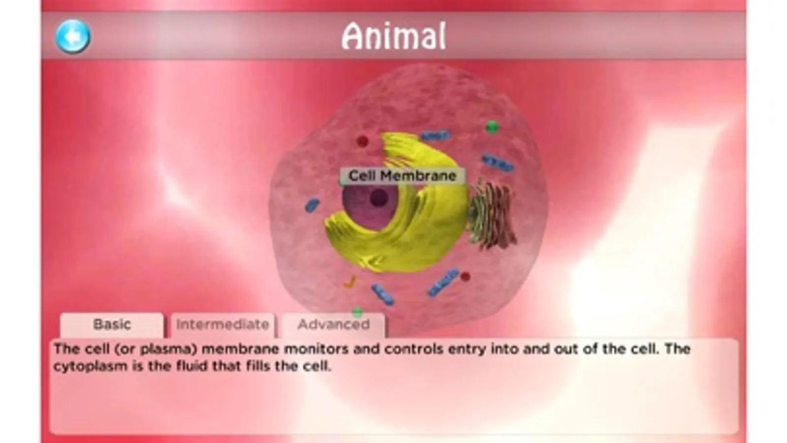 You can use your finger to tap on parts of the cell to select and zoom in on that particular organelle. Each organelle comes with a name and a short description of its function in the cell.