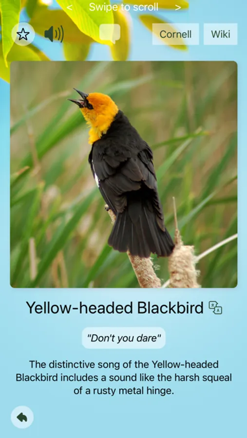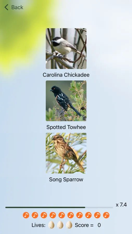 Use the quiz to test your memory. Answer fast to earn a score multiplier and get on the high score table. Experienced birders can use the custom quiz to help distinguish and learn similar songs.