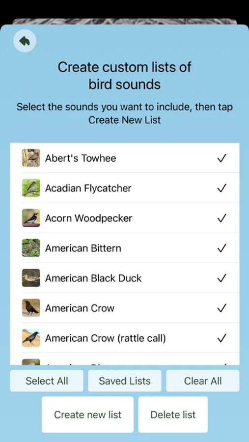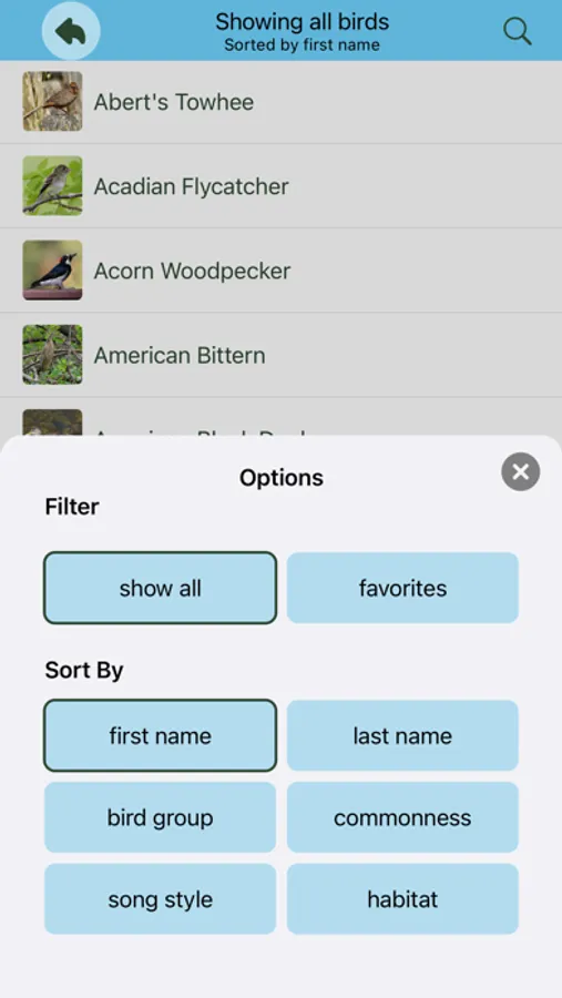 Choose a state or group of states then sort the bird sounds in a variety of ways. Sort by song style to compare birds that hoot and coo, with birds with high pitched songs, or you might like to sort the birds by commonness, so you can listen to the most common ones first, then move on to less frequent backyard visitors. More advanced birders may like to listen to birds from a particular habitat, such as forest or freshwater for example. You can make lists of your favourites so that you can find them quickly.