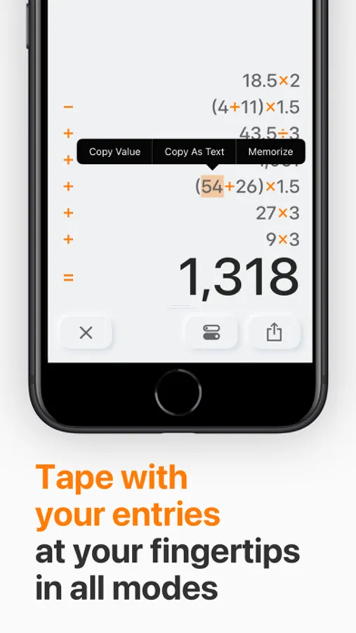 A history tape with your entries is comfortably accessible in all calculator modes. Thanks to it, you never lose track of what you’ve entered and the entries can be reused effortlessly in your calculations. The tape can also be exported to common formats and shared or printed.