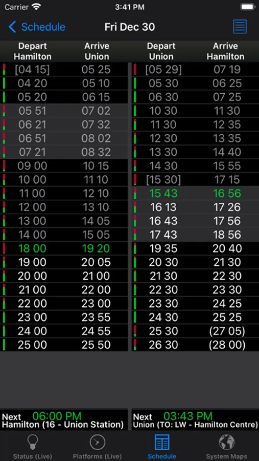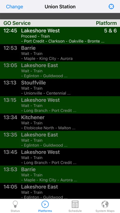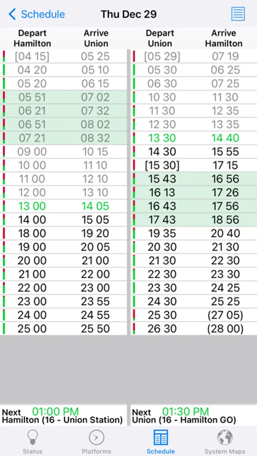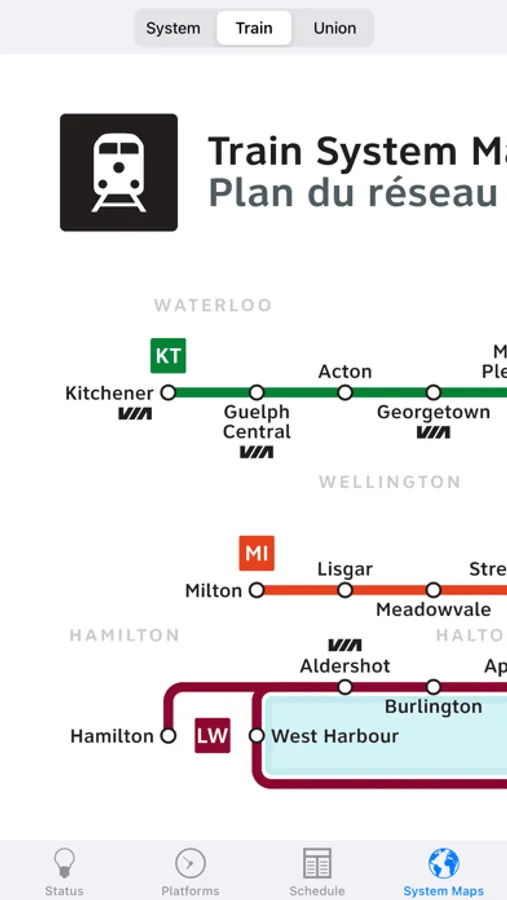 ● Current status for both trains and buses as reported by GOTransit.com