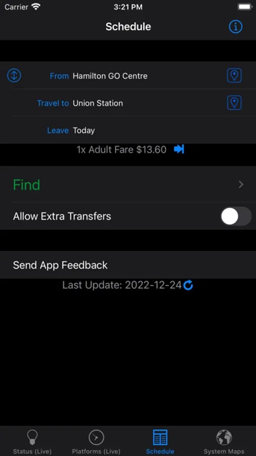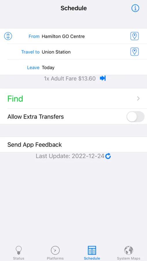 "I know designing a good search interface is hard, but yours is already pretty good. Having schedules is what makes the app worth purchasing, so you’ve got the right idea there. I’ve always been frustrated with the GO website, your app is already easier to use!" -Michael