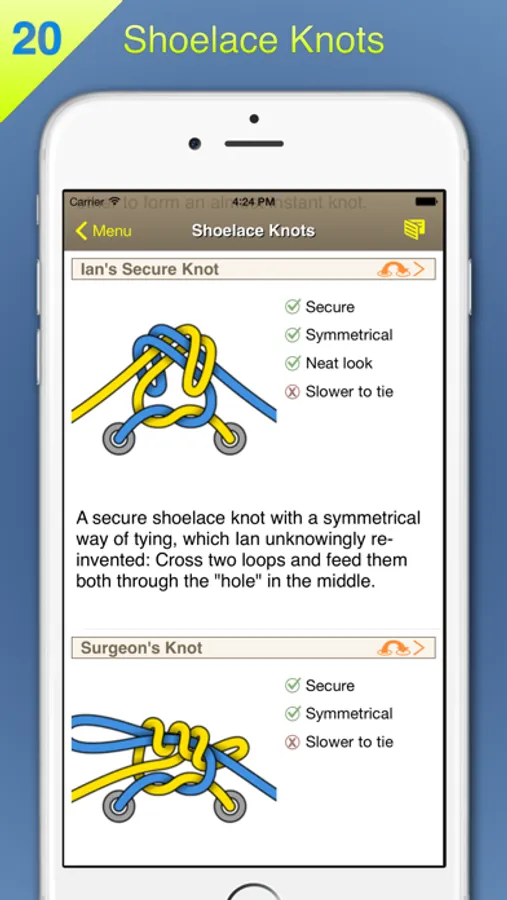 Compiled by Ian "Professor Shoelace" Fieggen, creator of the web's number one site about shoelaces, this app brings together more than a decade of lacing research. Plus, you'll also get exclusive methods not available on Ian's web site (or anywhere else).