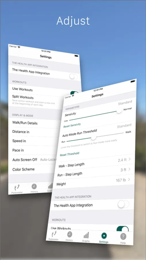 - Configurable step length for walking and running separately (check our website for step length calculators)