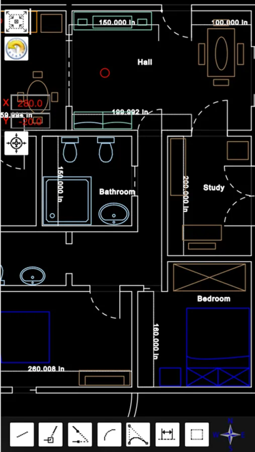 "FingerCAD" is the first CAD application for technical drawing with fingers assisted by computer for portable devices. With "FingerCAD" you can draw houses, bridges, planimetry of apartments, mechanical components, geometrical figures, everything that can be designed with a common PC CAD. Useful for the engineers on construction site, for architects, surveyors, designers, students etc.. The design possibilities with "FingerCAD" are endless and all this using only your portable device, during a travel or comfortably seated or standing at work. The ease of use makes it very useful and versatile. The final design can be saved using standard formats (ex. DXF) and can be sent via e-mail or printed. The zoom and pan, the customization of the drawing, the common cad tools, autosaving and the ability to continue operations even in subsequent sessions of use (at boot "FingerCAD" will load automatically the design saved in the previous session of use), possibility to add measurements and free text makes it truly unique. Each CAD object is treated as a separate object; You can then go back in time by removing the objects from last to first (also in next sessions of work), select and remove the undesired parts / incorrect objects. The "automatic acquisition of nearest vertices" facilitates the drawing of adjacent graphics objects and the function "2x" allows you to draw walls (double line) automatically (you can specify the thickness of the wall as desired). The three RGB components, alpha transparency, the freehand drawing, the ability to fill an object with colors, the color palette, the color picker, in addition to the common functions of a CAD give you the ability to add manual graphical effects at the overall design (also using freehand drawing).