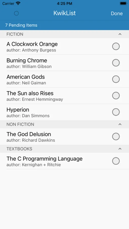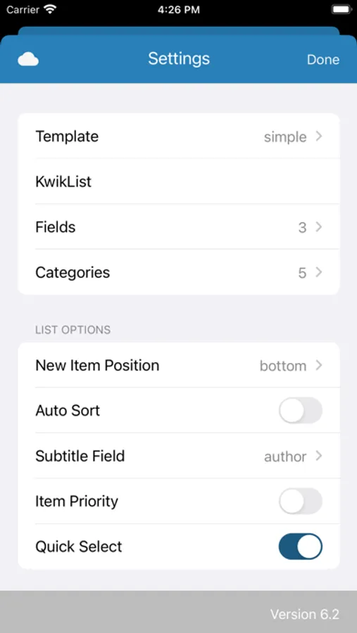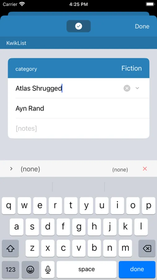 * Export your list as a .kwiklist file for backup and/or import into other devices.