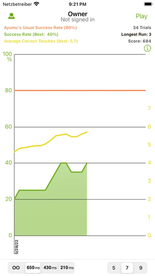 You can track your progress with several statistics (Ayumu prefers raisins ;-).