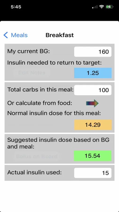 An all-in-one insulin calculator, carbohydrate database, favorites database, diary, A1C/eAG conversion, and Bolus On Board Calculation.