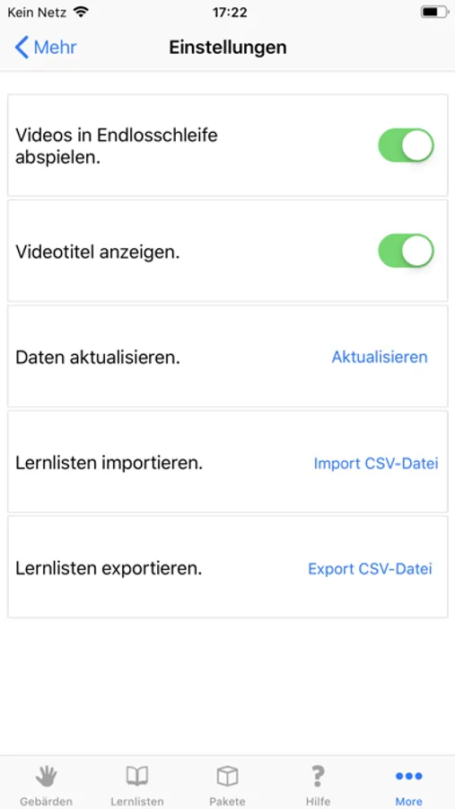 Zum gezielten Üben können Sie sich Lernlisten anlegen und als Abfragemodus auf Wunsch den Untertitel der Videos unterdrücken.
