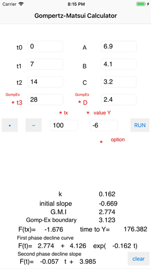 Gompertz-Matsui Calculator, an iPhone / iPod touch application, calculates Gompertz-Matsui formula from 3-point times (t0, t1, t2) and TaqMan viral loads of hepatitis C virus: HCV (A, B, C).
