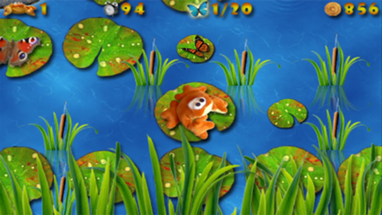 Control the cute frog iFroggi across the lake jumping from water lily pad to water lily pad by simply swiping on the iPhone multi-touch display.