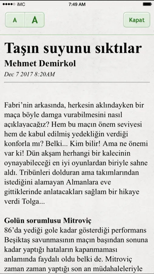 Uygulamanın, spor yazarlarının günlük köşe yazılarının listelendiği bölümüdür. Yazarın yazısının tümünü okumak için yazarın üzerine tıklayabilirsiniz. Seçilen yazı ilgili gazetenin mobil sitesi uygulama içerisinde açılacaktır. Yazarların yanında yer alan ikona tıklayarak yazarı takip ettiklerim listenize ekleyebilir ve istediğiniz zaman kolayca ulaşabilirsiniz.