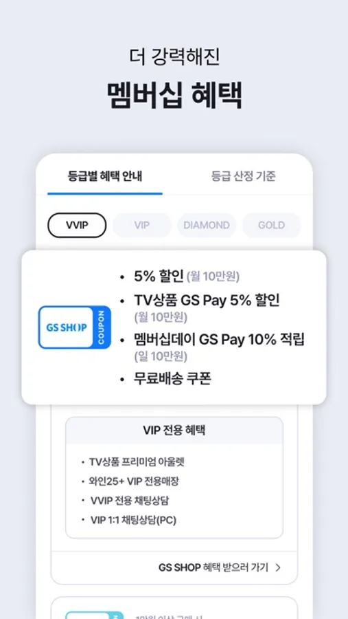 TV상품 GS Pay 최대 5%할인, 멤버십데이 GS Pay 최대 10%적립 혜택을 경험해 보세요