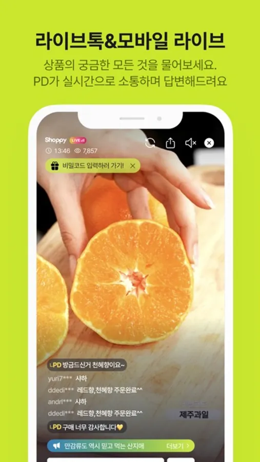 ◆ 방송 전이거나 방송을 놓쳤어도! 방송 알림을 신청하시면 방송 30분 전 알림 메시지를 보내드려요. 방송 알림 신청 상품을 주문하시면 3천원 쿠폰까지 챙겨드립니다.(쿠폰 소진 시까지) 앱 전용 쿠폰, 앱 전용 행사 등 앱에서 즐길 수 있는 즐거움과 혜택을 누려보세요. 언제나 당신의 가장 즐거운 선택, 즐거운 경험을 위해 최선을다하겠습니다