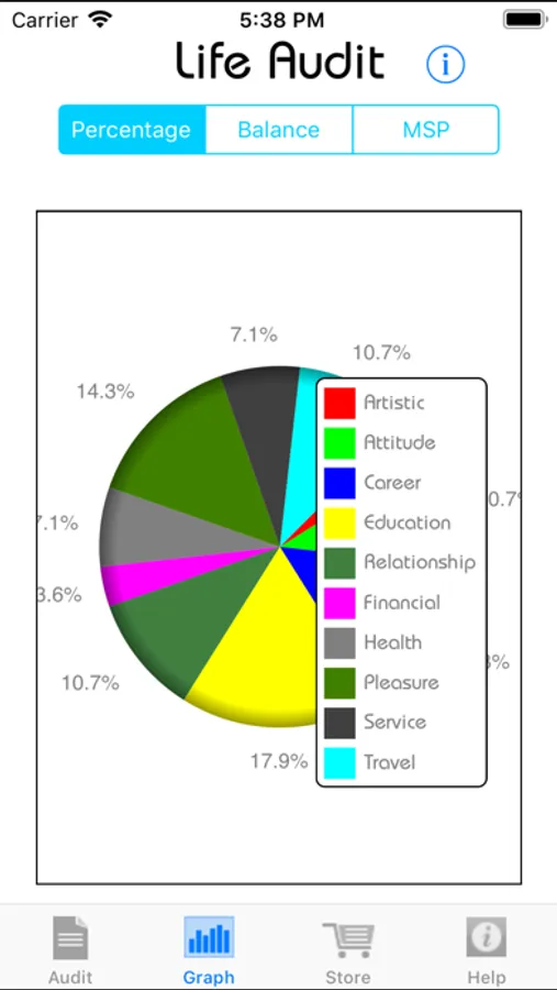 Life Audit is a companion product to Life Goals, which is also available in the App Store, and can help you design a more balanced life. Life Goals is designed to complement Life Audit. Here are a couple of reviews of Life Goals.
