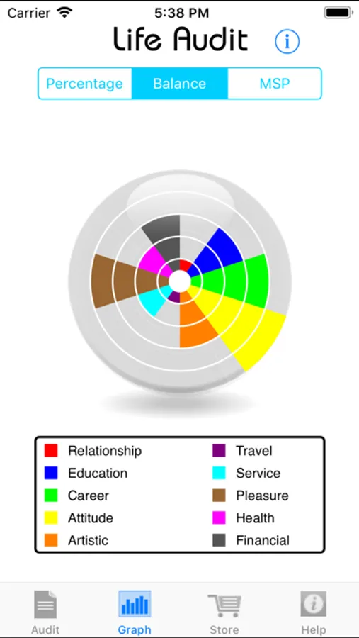 By answering just a few simple questions, Life Audit will produce a graphical representation of your life. It will highlight areas of your life that you are focussing on and more importantly, the areas which need additional attention.